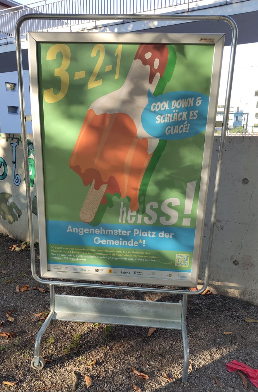 Wenn es zur Zeit natürlich nicht sehr warm ist, so wird es nach dem Winter sicher wieder steigende Temperaturen geben. Ziemlich sicher leider auch wieder Hitzetage. Daher ist es sinnvoll, sich mit dem Schlussbericht zu 3-2-1 heiss! zu befassen, an dem ich als Freiwillige teilgenommen habe. Wie kann ich, wie kann die Gemeinde sich kurz- und mittelfristig auf vermehrte Hitzetage einstellen?