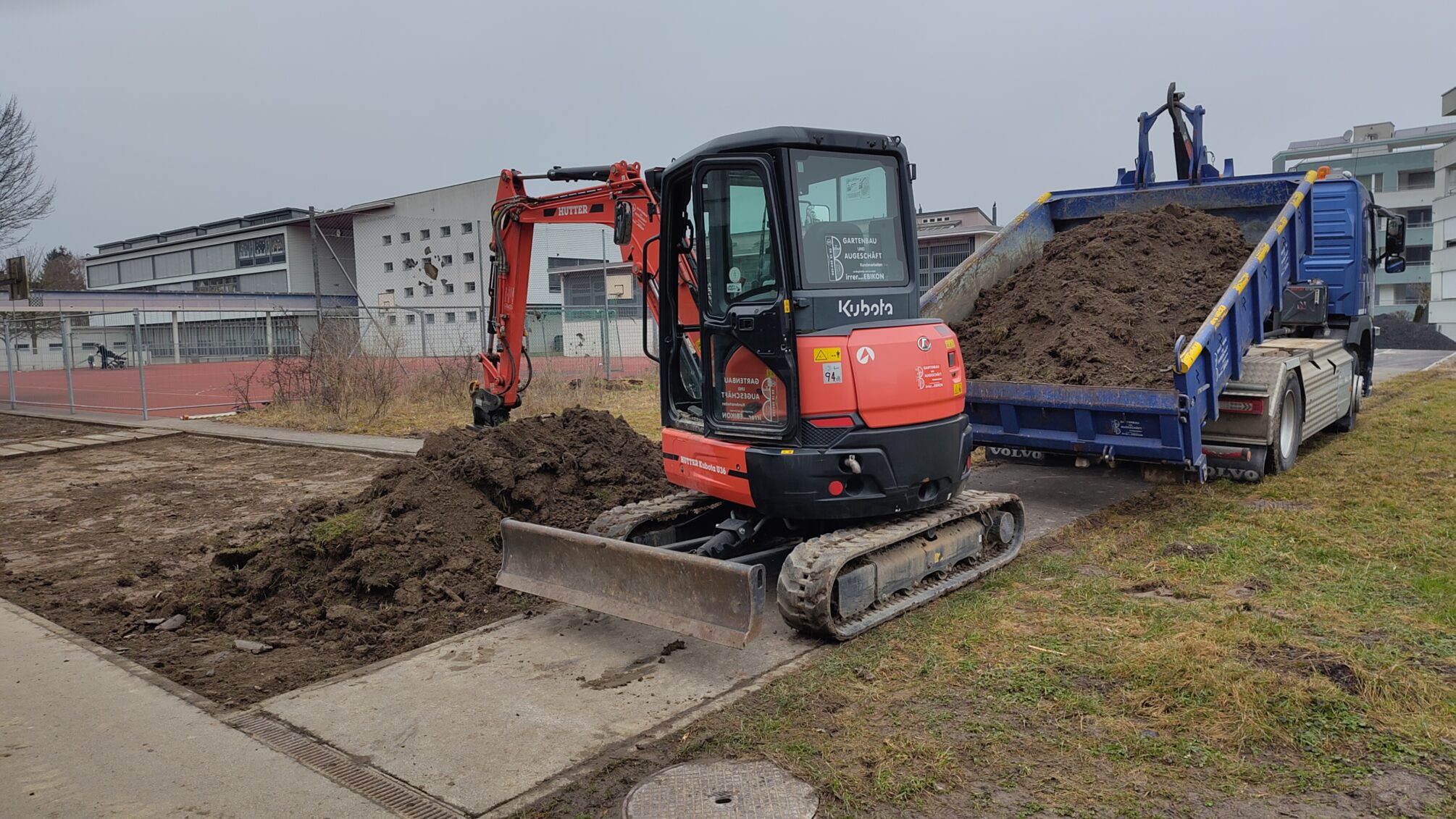 da wurde am Kindergarten eine Grasfläche abgetragen